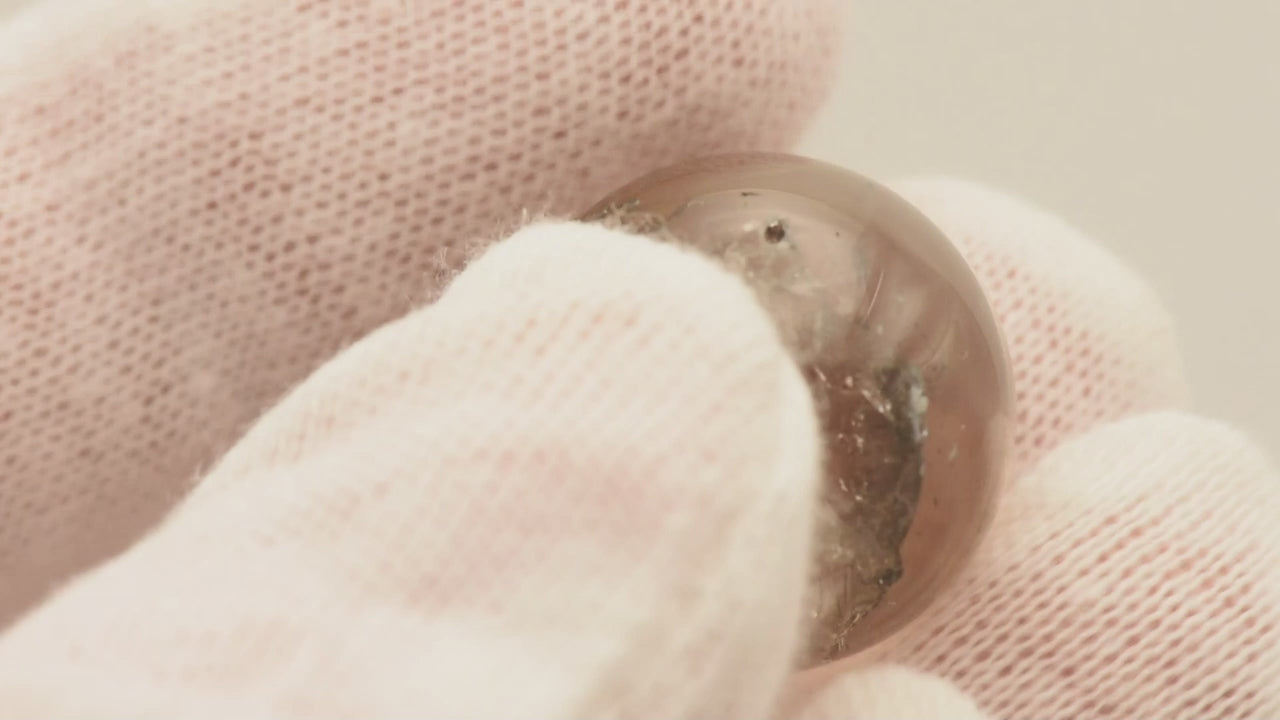 Beautiful piece of smoky quartz crystal with lots of internal fractures causing the appearance of rainbows, magnified by its being sculpted into a round sphere.